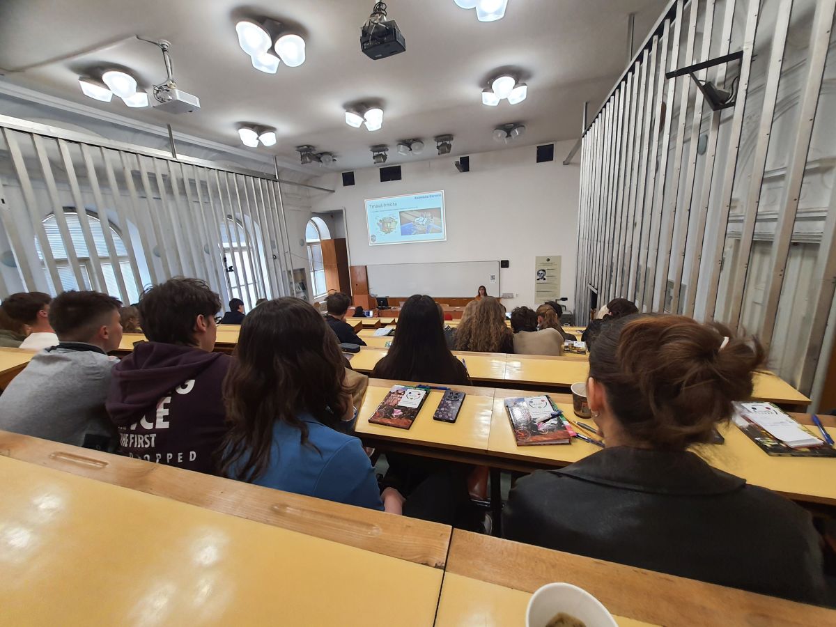 Druhá časť prednášok bola zameraná na (anti)hmotu. Žiaci sa dozvedeli viac o antihmote, jej vlastnostiach a význame vo výskume, ako aj o aktuálnych výsledkoch experimentov v CERN-e. Súčasťou výkladu bolo aj vysvetlenie, ako vedci skúmajú tmavú hmotu – napríklad prostredníctvom pozorovania anomálií v kozmickom žiarení, ktoré môže naznačovať jej prítomnosť vo vesmíre.