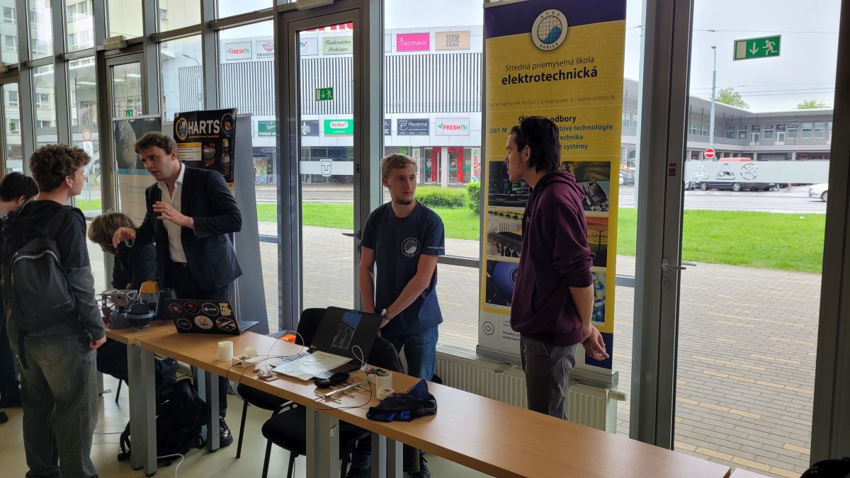 Dňa 5. mája v čase od 09:00 do 13:00 sa na pôde Technickej univerzity v Košiciach konala akcia Namakaný Deň 2025. Namakaný Deň je zameraný na „makačov”, pričom sa pod slovom „makači“ ukrývajú technickí nadšenci softvérovej tvorby či hardvérových vychytáviek. Jednu takúto „namakanú“ vychytávku prezentoval aj náš team ESPEŠKARI. Michal Cupják a Jakub Lacko, obaja z 3.F, vystavovali a predstavili svoj CanSat. (CanSat je malý satelit, ktorý zbiera rôzne údaje ako teplota, tlak, nadmorská výška. Musí mať rozmery plechovky a byť vystrelený raketou, prípadne byť vynesený dronom do cca 1 km.) Podelili sa so skúsenosťami a riešením problémov pri jeho realizácii a pomohli tak motivovať ďalších stredoškolákov zapojiť sa do tejto zaujímavej súťaže. Na podujatí bola možnosť vidieť aj raketu, ktorá vyniesla ich CanSat do výšky viac ako 1 km. Chlapci zároveň predviedli novú, prepracovanejšiu a vylepšenú verziu CanSatu, s ktorou budú súťažiť na celoslovenskom finále v Malých Bieliciach už 7.5.2025.