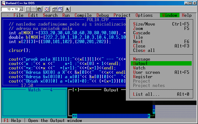program odľadíme. Okno Output predstavuje obrazovku cez ktorú s nami program