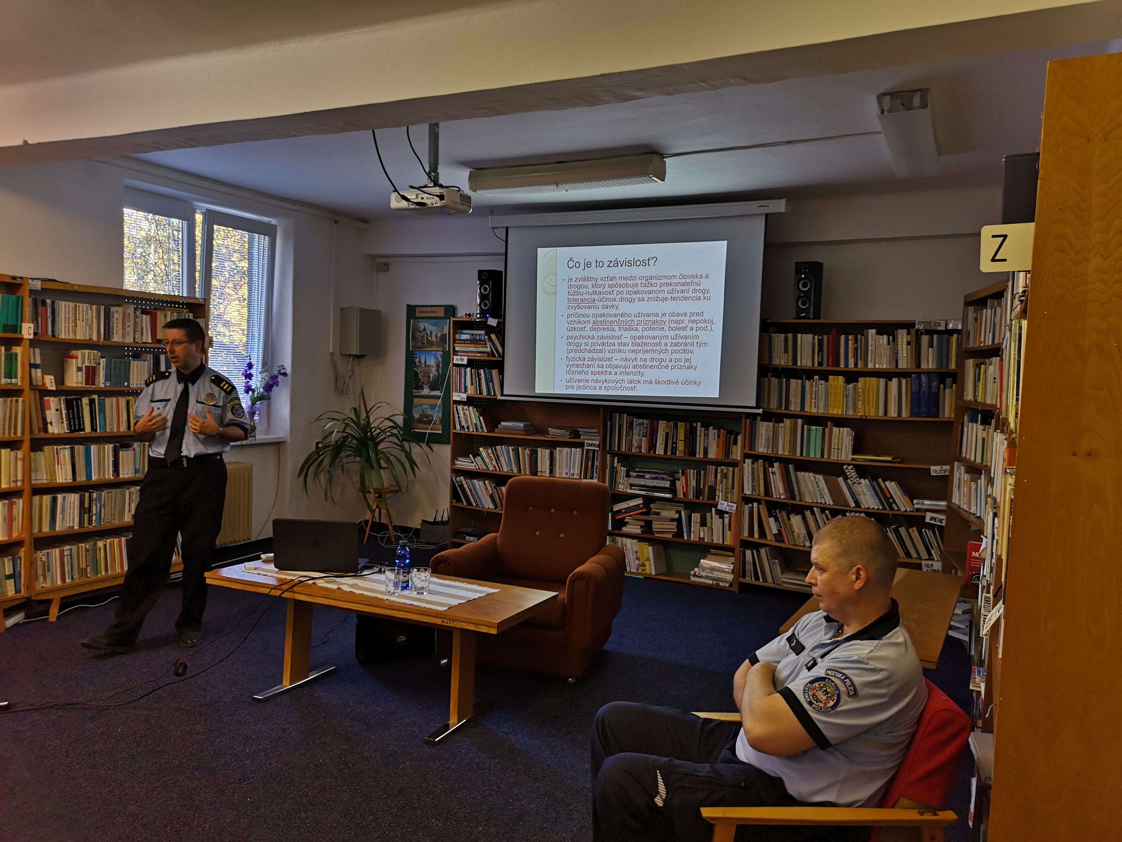 Beseda s témou: Ako a prečo povedať drogám nie. Táto beseda sa konala v dvoch termínoch a to 9. a 11.10.2018 v internátnej knižnici.