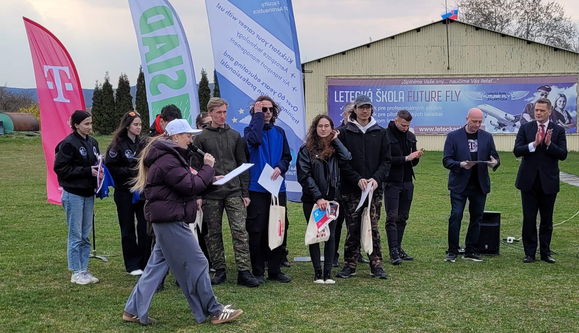 Po privítaní koordinátorom pre východoslovenský kraj Ing. Patrikom Švábom, PhD., z Leteckej fakulty TUKE a prevzatí si „štartovacieho“ balíčka s občerstvením sme sa pustili do prichystania sondy na prevádzku. Tím sa pustil do prípravy stanovištia, Michal pripojil batériu a otestoval rádiovú komunikáciu s modulom a druháci spustili počítače a testovali príjem a spracovanie dát zo sondy. Eva ako PR manažérka všetko sledovala, robila fotky a zaznamenávala správnosť postupov. Všetko prebiehalo v poriadku, dáta prichádzali, vládla spokojnosť. Mali sme aj čas sledovať prácu ostatných tímov, na neformálne rozhovory s hosťami, ale aj vážne rozhovory s redaktormi z televízie.