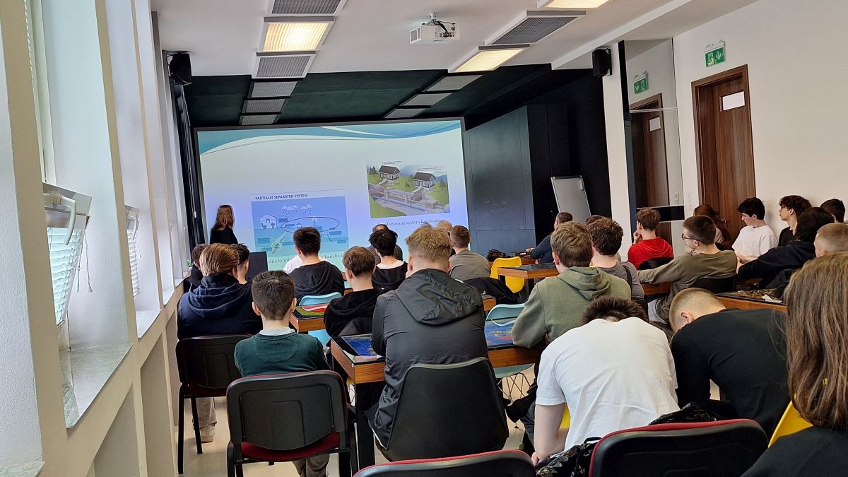 Prednášku viedla p. doc. Ing. Zita Takáčová, PhD., ktorá nám pútavým spôsobom priblížila „životný príbeh“ vody, ktorú denne používame – či už doma, alebo v priemysle. Dozvedeli sme sa, že voda po odtoku z našich domácností rozhodne nekončí len tak „niekde preč“. Naopak, čaká ju dlhý proces čistenia, počas ktorého sa odstraňujú nečistoty, chemické látky aj mikroorganizmy.