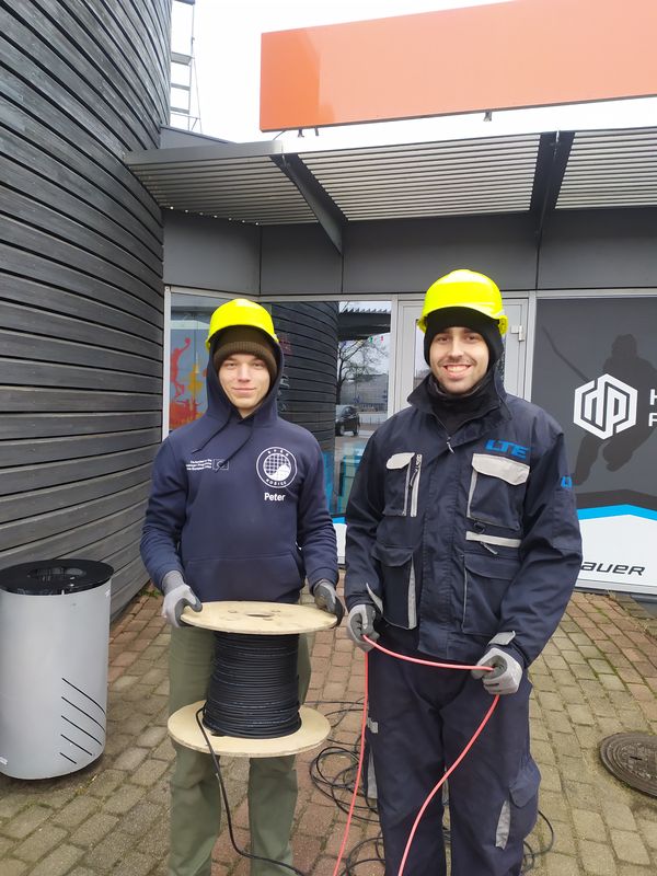 Pracovisko Elnetworks Liepāja - 2 žiaci so zameraním na Elektrotechniku získali reálne skúsenosti v praxi pri montáži a demontáži káblov pre svetelné rozvody, pri montáži solárnych panelov na strechu.