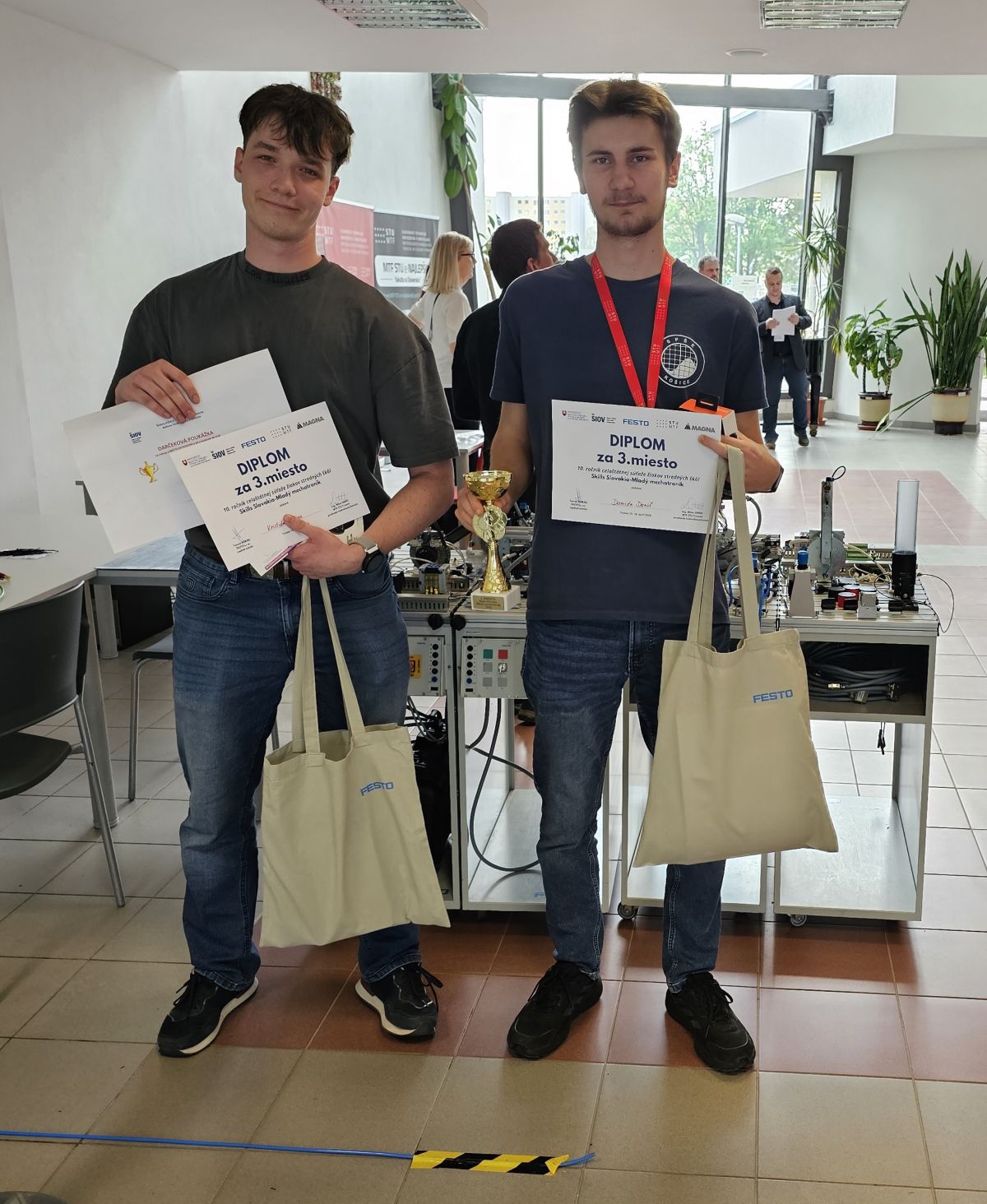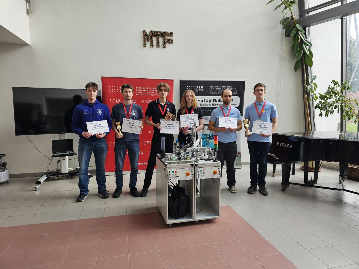V dňoch 15. – 16. 4. 2026 na Materiálovotechnologickej fakulte Slovenskej technickej univerzity v Trnave sa konalo celoštátne kolo súťaže Mladý mechatronik pod záštitou Ministerstva školstva a spoločnosti Festo. Našu školu úspešne reprezentovali žiaci 4. F triedy Damián Daniš a Kristián Vašiga, ktorí obsadili 3. miesto spomedzi 16 súťažných tímov škôl zameraných na mechatroniku z celého Slovenska.