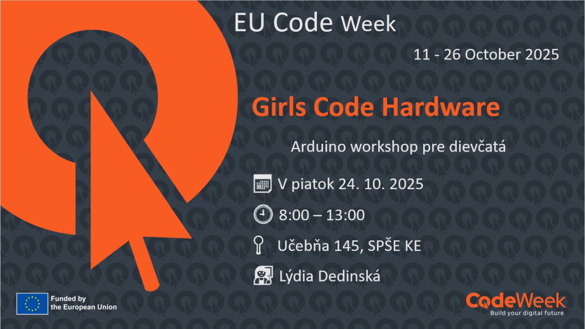 Tento workshop sa koná v rámci celoeurópskej iniciatívy EU Code Week, ktorá podporuje rozvoj digitálnych zručností u mladých ľudí. Účastníčky vyskúšajú prácu s mikropočítačom Arduino, naučia sa základy programovania elektronických obvodov a vytvoria jednoduché interaktívne projekty.