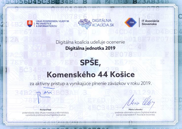 Medzi ocenenými bol aj náš študent Daniel Pirich z 1. C, ktorý ako jediný zástupca stredných odborných škôl úspešne reprezentoval našu školu v konkurencii žiakov z popredných košických gymnázií, vrátane tých so zameraním na matematiku (Alejová, Poštová a Šrobárova).