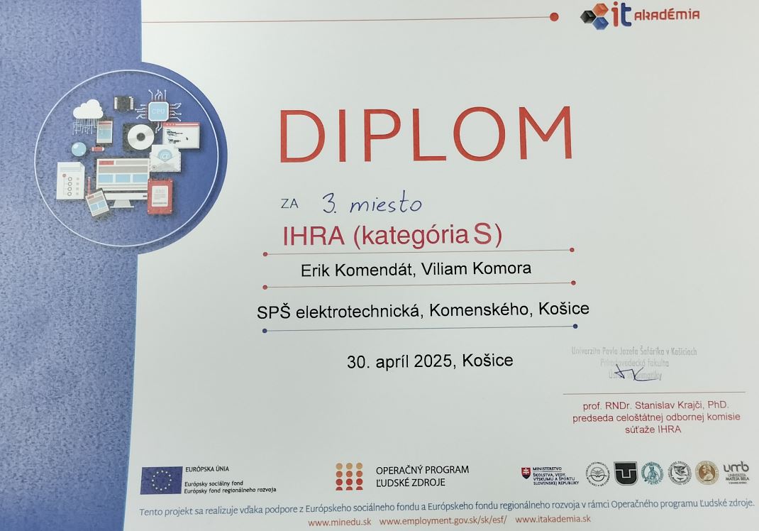 Dňa 30. apríla 2025 na Ústave informatiky Prírodovedeckej fakulty Univerzity Pavla Jozefa Šafárika v Košiciach sa uskutočnila záverečná prehliadka 13. ročníka súťaže IHRA – programovanie počítačových hier