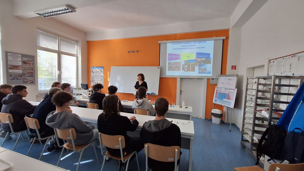 Prednáška nebola len o počúvaní. Študenti mali možnosť vidieť reálne experimenty, ktoré názorne ukázali princípy tzv. pasívneho čistenia vôd. Dozvedeli sa, aké materiály sa využívajú pri čistení, ako fungujú reaktívne bariéry a aká je ich účinnosť v praxi.