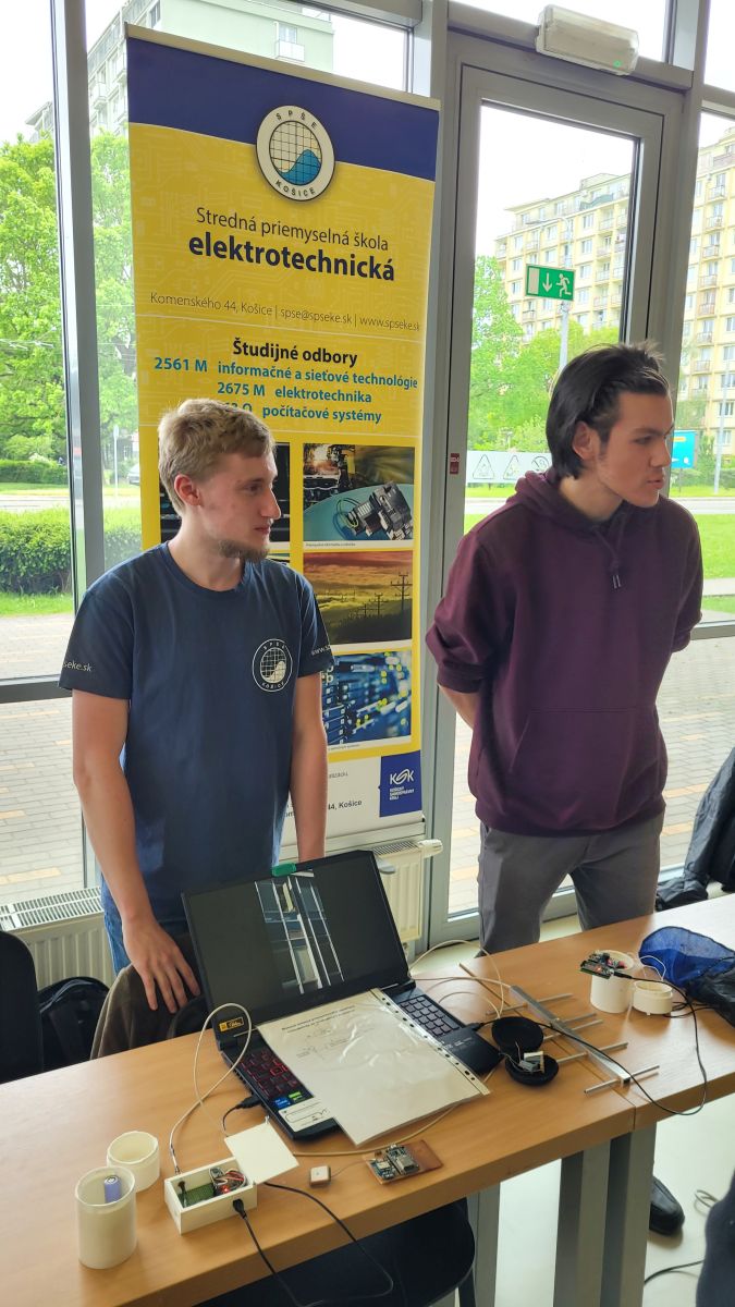 Dňa 5. mája v čase od 09:00 do 13:00 sa na pôde Technickej univerzity v Košiciach konala akcia Namakaný Deň 2025. Namakaný Deň je zameraný na „makačov”, pričom sa pod slovom „makači“ ukrývajú technickí nadšenci softvérovej tvorby či hardvérových vychytáviek. Jednu takúto „namakanú“ vychytávku prezentoval aj náš team ESPEŠKARI. Michal Cupják a Jakub Lacko, obaja z 3.F, vystavovali a predstavili svoj CanSat. (CanSat je malý satelit, ktorý zbiera rôzne údaje ako teplota, tlak, nadmorská výška. Musí mať rozmery plechovky a byť vystrelený raketou, prípadne byť vynesený dronom do cca 1 km.) Podelili sa so skúsenosťami a riešením problémov pri jeho realizácii a pomohli tak motivovať ďalších stredoškolákov zapojiť sa do tejto zaujímavej súťaže. Na podujatí bola možnosť vidieť aj raketu, ktorá vyniesla ich CanSat do výšky viac ako 1 km. Chlapci zároveň predviedli novú, prepracovanejšiu a vylepšenú verziu CanSatu, s ktorou budú súťažiť na celoslovenskom finále v Malých Bieliciach už 7.5.2025.